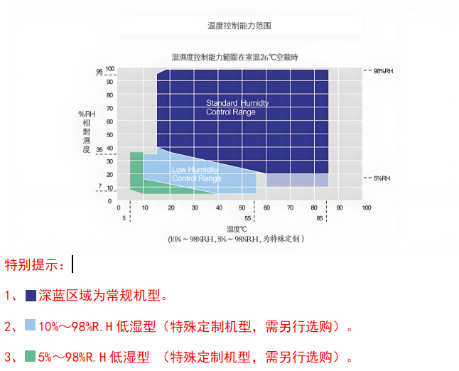 常规型(20~98)%RH / 低湿型(10~98)%RH (定制) / 低湿型(5~98)%RH (定制) |