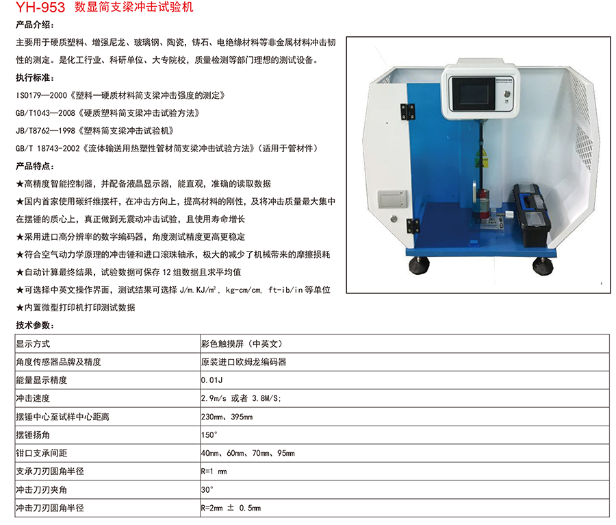 YH-953数显简支梁冲击试验机